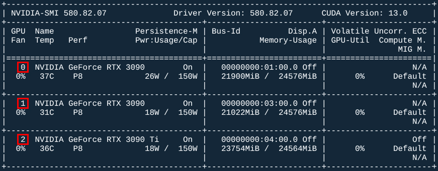 Здесь есть закомментированная строка device_ids: ["1"], она позволяет прокидывать в контейнер только определенные видеокарты (нужно закомментировать count: "all") по индексам как в nvidia-smi: