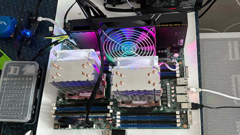 Для тестов на пару часов такая система охлаждения вполне сойдет, но работать часами в одной комнате с этими серверными турбинами невозможно.