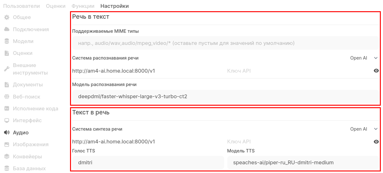 В первую очередь меня интересовала транскрибация (STT) для OpenWebUI.
